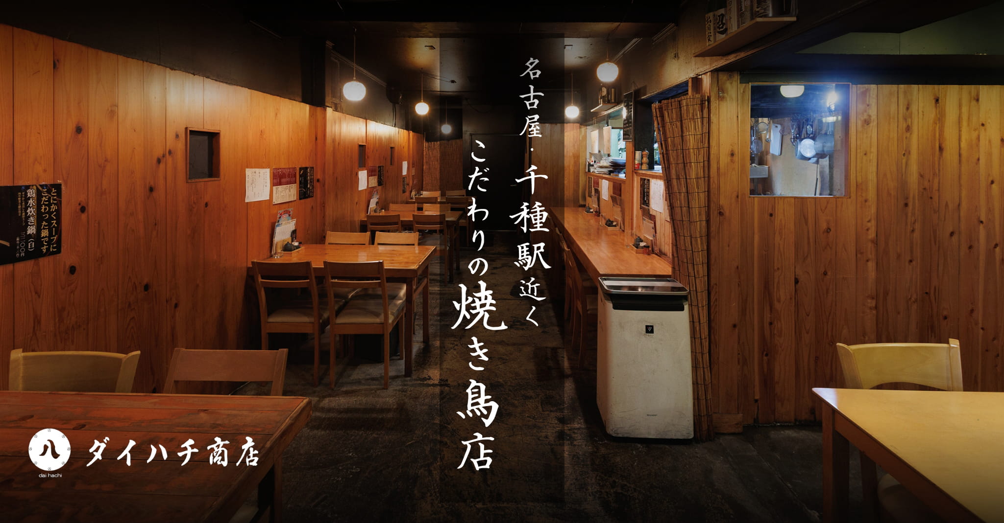千種駅近くに佇む「ダイハチ商店」は、和食出身の店主が鶏の旨さにとことん向き合う鶏料理店です。主に使用するのは「名古屋コーチン」と「三河どり」。毎朝捌きたての鶏を仕入れ、徹底した鮮度管理のもと、一品一品に妥協せず丁寧に仕込みを行っています。おすすめは焼き鳥と鳥刺し。火入れで旨みを引き出す焼き鳥と、安心して味わえる鮮度の鳥刺しで、地鶏本来の味わいを堪能できます。落ち着いた店内で、肩の力を抜きながら、店主こだわりの鶏料理をゆっくりとお愉しみください。