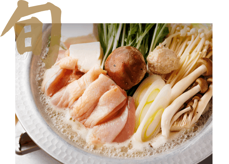 その時季ならではの美味しさを大切に、季節の料理も用意しています。夏は甘みが際立つ『トウモロコシのかき揚げ』をはじめとした季節の一品を、冬は『水炊き』や『鴨しゃぶしゃぶ』といった、旨味が沁みる鍋料理をご用意。季節の食材も取り入れ、柿やいちじくを使った旬の果物サラダもございます。訪れるたびに違った味わいをお愉しみください。